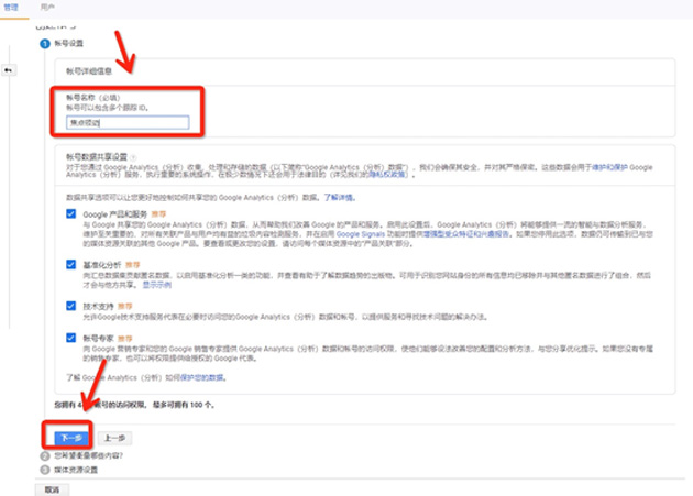 3、輸入賬號名稱:在創(chuàng)建賬號時,您需要輸入賬號名稱(中文即可,最少 3 個漢字),并單擊“下一步”。(如下圖所示)