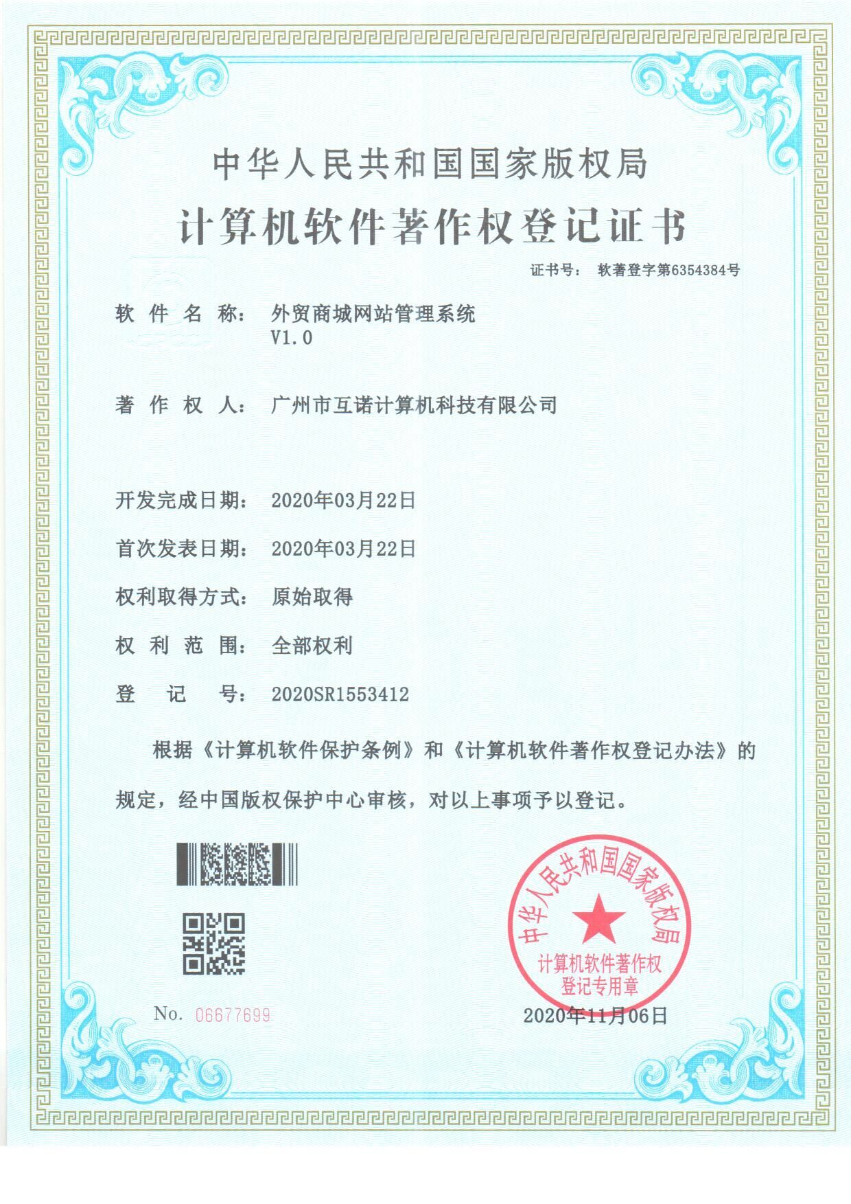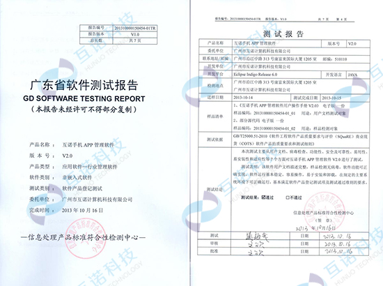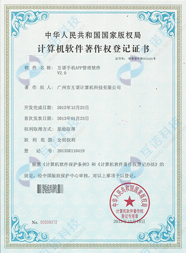 互諾手機(jī)APP管理軟件產(chǎn)品登記證書