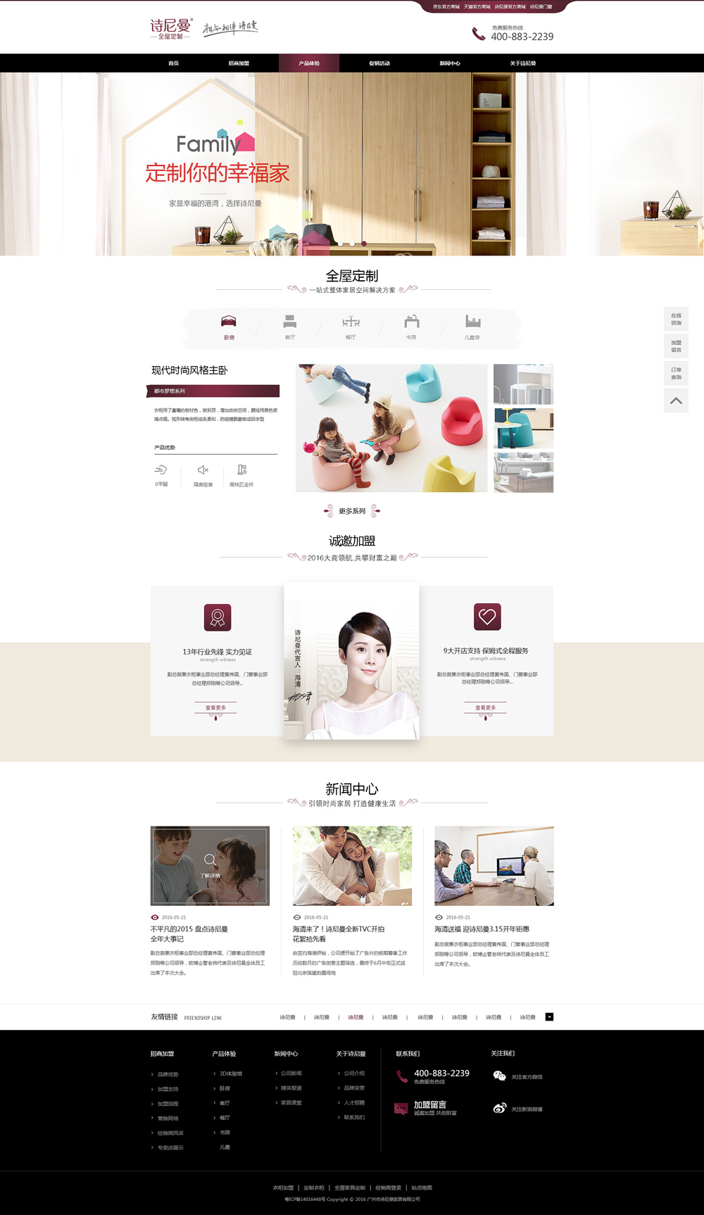 廣州市詩尼曼家居有限公司成立于2003年,總部位于廣州市番禺區(qū),占地總面積150余畝,旗下?lián)碛小霸娔崧荻ㄖ啤焙汀霸娔崧T窗”兩大定制核心體系,產(chǎn)品涵蓋衣柜、門窗、沙發(fā)、床、床墊等多種品類,形成多元化、全方位的定制家居產(chǎn)業(yè)格局。公司采用先進的德國豪邁生產(chǎn)線,全自動化、數(shù)控化開料、排孔、封邊,生產(chǎn)能力與國際...