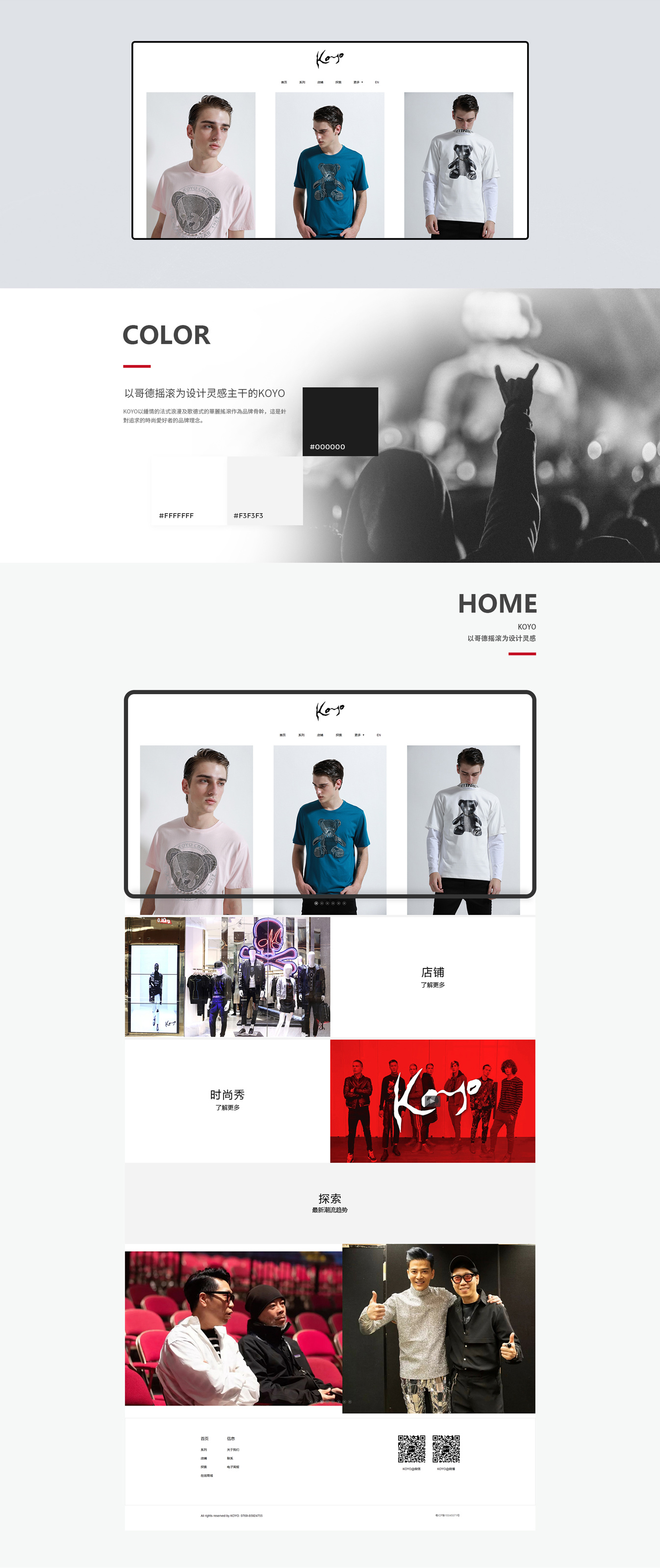 KOYO以鍾情的法式浪漫及歌德式的華麗搖滾作為品牌骨幹,這是針對追求的時尚愛好者的品牌理念。獨創把高級睌裝物料及手工細節用於街頭時裝,成為他的成名作品系列“破滅與重生”的風格。 KOYO每季均以哥德搖滾為設計靈感主干以不同類型的歌德題材上,黑色是KOYO的主要色系,每季以不同配襯色系色襯托陰沉的黑色搖滾造型,KOY...