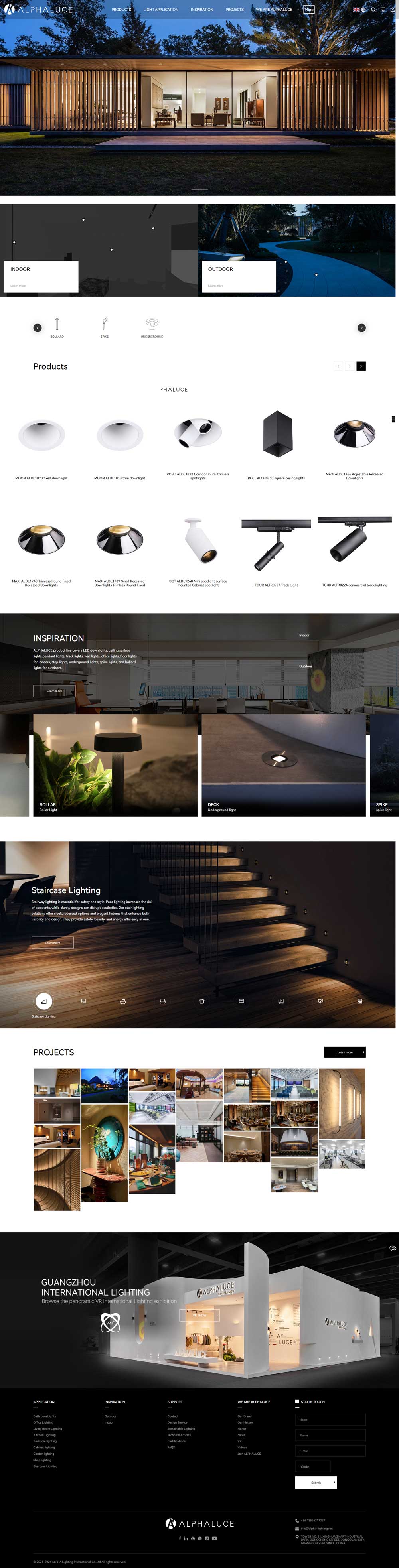 視覺體系構(gòu)建:采用經(jīng)典黑白主色調(diào)打造沉浸式瀏覽體驗,暗色背景有效強化照明類的產(chǎn)品案例的視覺表現(xiàn)力