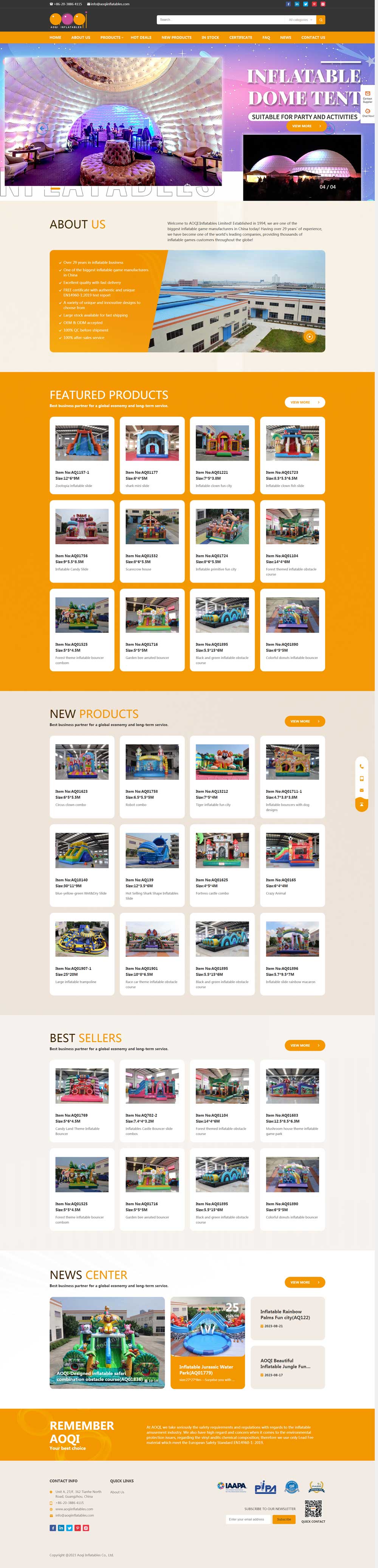 Welcome to AOQI Inflatables Limited! Established in 1994, we are one of the biggest inflatable game manufacturers in China today! Having over 29 years' of experience, we have become one of the world’s leading companies, providing thousands of inflatable games customers throughout the globe!