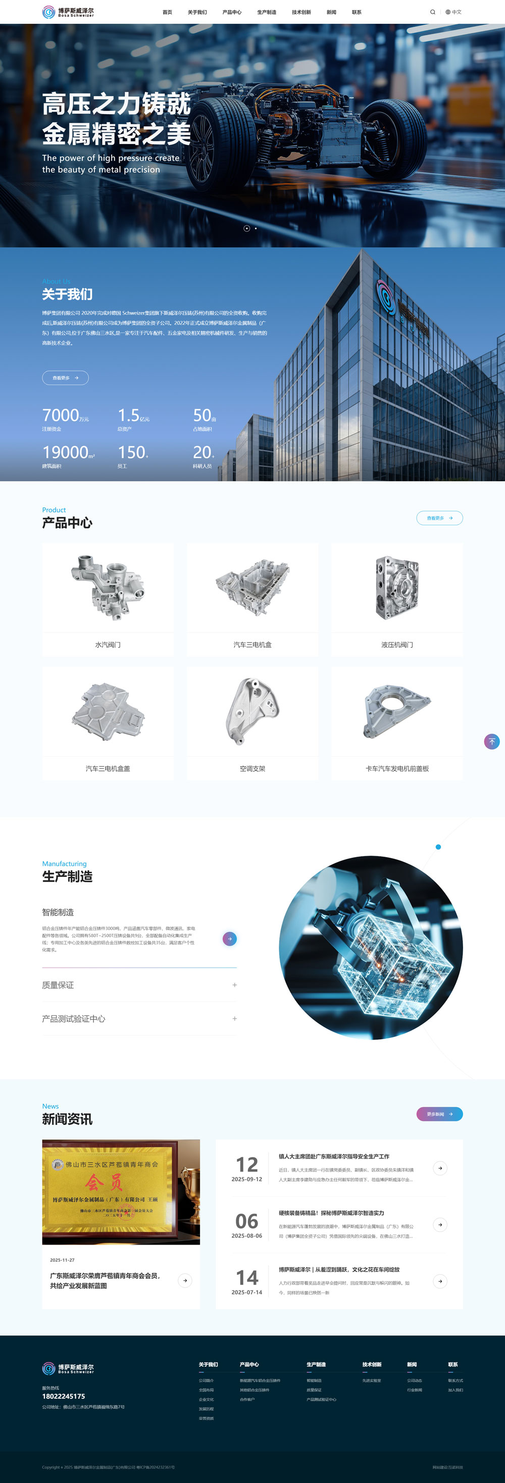 博薩斯威澤爾金屬制品(廣東)有限公司成立于 2010 年 11 月,是精密鋁合金壓鑄領(lǐng)域的專業(yè)企業(yè),憑借戰(zhàn)略轉(zhuǎn)型與資源整合,已形成研發(fā)、生產(chǎn)、銷售全鏈條服務(wù)能力,深耕汽車零部件、電力電氣、機(jī)械制造三大核心行業(yè),主營產(chǎn)品:新能源汽車鋁合金壓鑄件以及其他鋁合金壓鑄件。