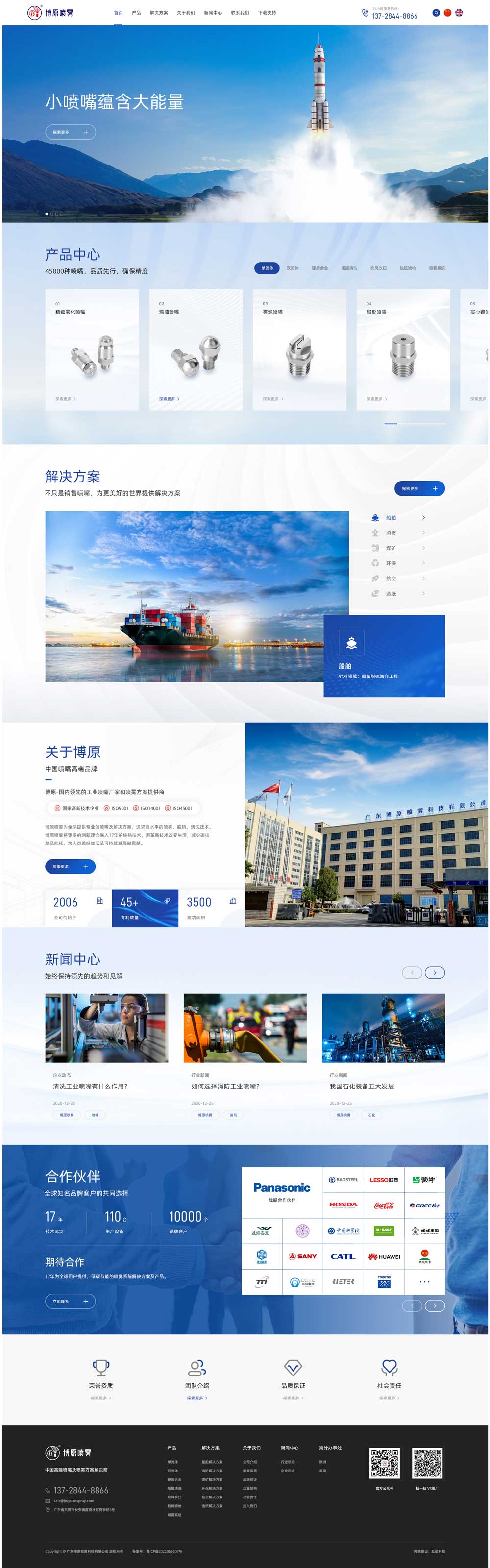 廣東博原噴霧科技有限公司創立于2006年,位于東莞市長安鎮,是國內領先的工業噴嘴源頭生產廠家和噴霧方案提供商之一。