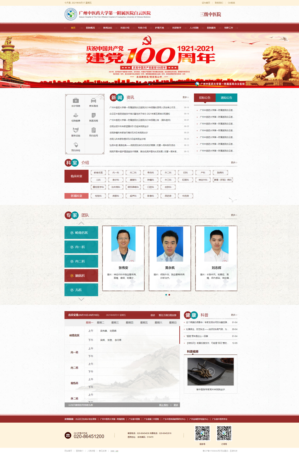 廣州中醫藥大學第一附屬醫院白云醫院(廣州市白云區中醫醫院)座落在風景如畫的人和鎮流溪河畔,位于廣州白云國際機場西南面2公里處,且地處廣州市空港經濟核心區。醫院交通十分便利,地鐵3號線和106國道途經醫院正門,有通往全省乃至全國的高速公路網絡。醫院前身為廣州市白云區人和華僑醫院,于1988年由政府征地、秘魯僑領戴宗漢等華僑捐資興建,1989年落成并投入使用,2006年升格為白云區中醫醫院, 2014年醫院通過國家二級甲等評審;2018年,白云區衛計局正式核準白云區中醫醫院為三級中醫醫院;2020年5月,由白云區人民政府牽頭,與廣州中醫藥大學第一附屬醫院建立緊密型醫聯體,并更名為廣州中醫藥大學第一附屬醫院白云醫院。