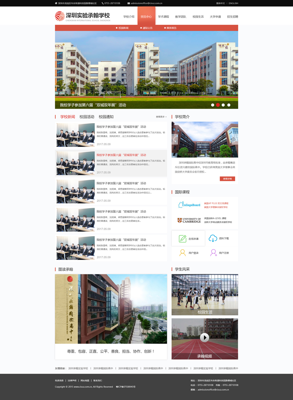 國際課程實(shí)驗(yàn)校區(qū)(簡稱“承翰國際CICEC”)是經(jīng)深圳市政府批準(zhǔn)(【2011】588)開展高中國際課程實(shí)驗(yàn)的高品質(zhì)國際化學(xué)校。學(xué)校建筑獲得“魯班獎(jiǎng)”,校園環(huán)境優(yōu)美高雅,國際化氛圍濃厚,場館設(shè)備齊全,硬件設(shè)施國內(nèi)一流,為學(xué)生營造安全、舒適、健康、科學(xué)的校園生活環(huán)境;學(xué)校由資深的中、外方校長合作管理,教師團(tuán)隊(duì)由外籍教師和留學(xué)歸國的碩士、博士組成,因材施教,分層教學(xué),導(dǎo)入美國WASC認(rèn)證體系,辦學(xué)成果顯著,助力眾多學(xué)子實(shí)現(xiàn)留學(xué)理想。