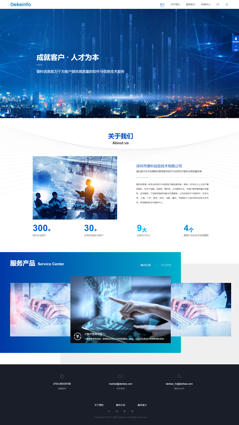 深圳市德科信息技術有限公司是一家專業的軟件與信息技術服務提供商,擁有一支3000人以上的IT精英團隊,專注于金融、互聯網、高科技、公共服務行業,為客戶提供高質量外包服務、咨詢服務、產品研發服務和解決方案服務。公司總部位于中國深圳,并在北京、上海、廣州、南京、杭州、成都、重慶、珠海等12個國內城市設有分支機構、研發基地和交付服務中心。