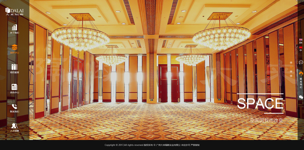 廣州大來隔斷實業有限公司,設計、生產、銷售、安裝一體的專業隔斷產品供應商。成立時間1995年。公司產品系列活動隔斷、玻璃活動隔斷、玻璃固定隔斷、護精板、浴室隔斷。公司面積11000方米。員工人數約400員工,設計研發人員約20人。直屬分支辦事處廣州、北京、上海、深圳、杭州、南京、武漢、福州、成都、香港專利證書18項。檢測誕書具有防火檢測、隔音檢測、承里檢測、環保檢測、CE歐盟標準。已完成項目開業二十多年至今已完成四、五星級酒店過千家,其他類型項目不計其數。中國裝飾協會會員、廣州市獲飾協會理事、重合同守信用企業。國際質量體系認證IS09001。