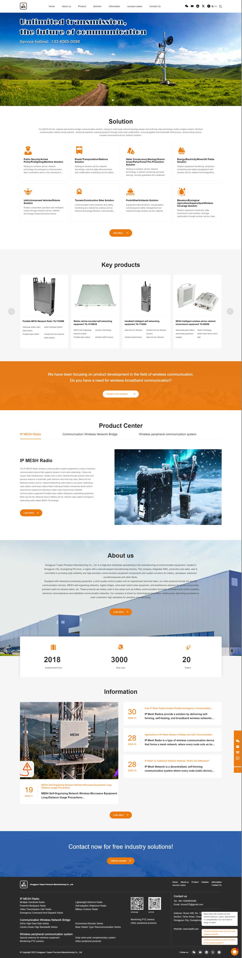 東莞市圖錢精密制造有限公司專注于軍用通信設備精密制造,以極致工藝守護國家通信安全。從材料選型到精密加工,從環境適應性測試到保密生產管理,以軍工標準嚴控每一環節,確保產品在極端環境下依然穩定運行。公司主營產品:無線通信系統、軍用通信設備、無線微波網橋通信系統。未來,圖錢將持續深耕通信技術,以創新驅動發展,助力國家構建更安全、更智能的國防通信體系,成為守護信息疆域的堅實之盾。