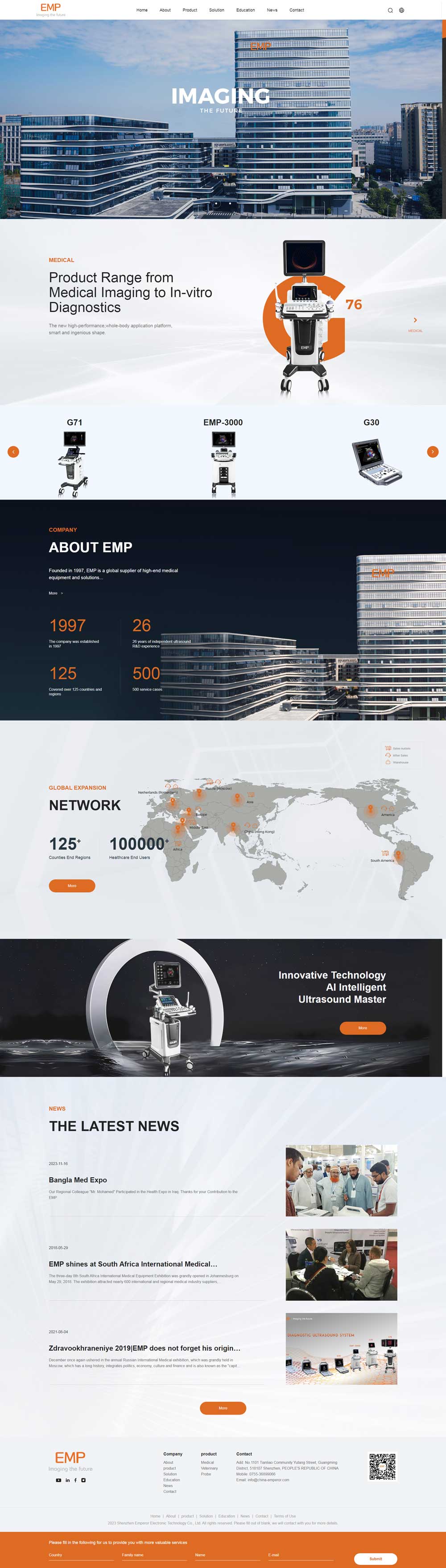 Shenzhen Emperor Electronic Technology Co., Ltd. Founded in 1997, EMP is a global supplier of high-end medical equipment and solutions. We are committed to providing comprehensive services across the entire industry chain integrating high-end medical equipment R&D, production, marketing and service.