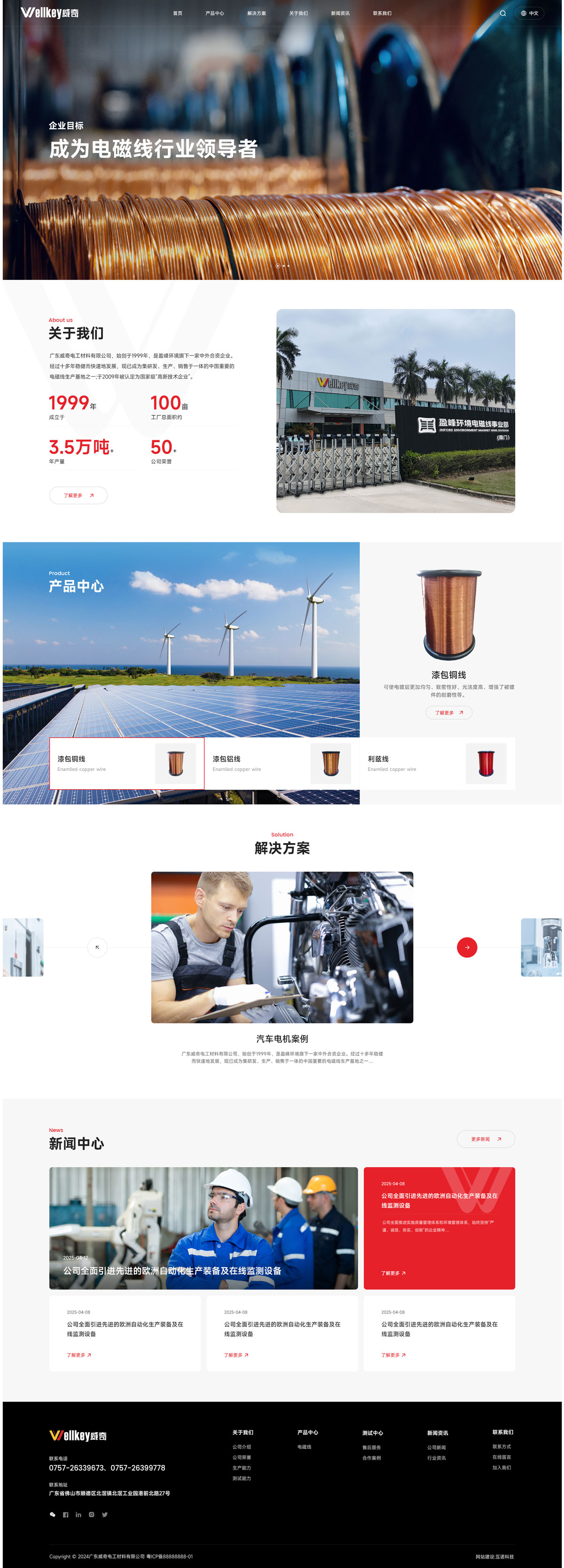 廣東威奇電工材料有限公司,始創(chuàng)于1999年,是盈峰環(huán)境旗下一家中外合資企業(yè)。經(jīng)過十多年穩(wěn)健而快速地發(fā)展,現(xiàn)已成為集研發(fā)、生產(chǎn)、銷售于一體的中國(guó)重要的電磁線生產(chǎn)基地之一;于2009年被認(rèn)定為國(guó)家級(jí)“高新技術(shù)企業(yè)”。公司總部位于廣東省佛山市順德區(qū)北滘鎮(zhèn),地處珠江三角洲腹地,地理位置優(yōu)越,水陸交通十分便利。公司全面引進(jìn)先進(jìn)的歐洲自動(dòng)化生產(chǎn)裝備及在線監(jiān)測(cè)設(shè)備,主要產(chǎn)品包括各種溫度等級(jí)的漆包銅圓線、扁線和漆包鋁圓線等,廣泛應(yīng)用于汽車電機(jī)、制冷壓縮機(jī)、電子線圈、電動(dòng)工具、高壓超高壓輸配電設(shè)備、軌道交通、風(fēng)能發(fā)電設(shè)備等各類電機(jī)、電器;其中主要產(chǎn)品均通過美國(guó)UL安全認(rèn)證。