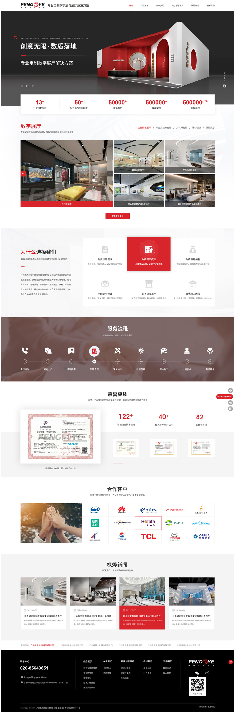 楓燁文化科技創立于2008年,立足于高質量的工程搭建, 以文化創意為業務核心,融合數字創意展示與多媒體技術, 投入匠心為政府、事業單位、企業等提供完善而高品質的 展廳、展覽設計施工一體化服務。14年實力沉淀,楓燁在 規劃館、博物館、園區展示中心、企業展廳、主題館、展 覽及主場運營等多個領域,打造了數百個標桿項目。