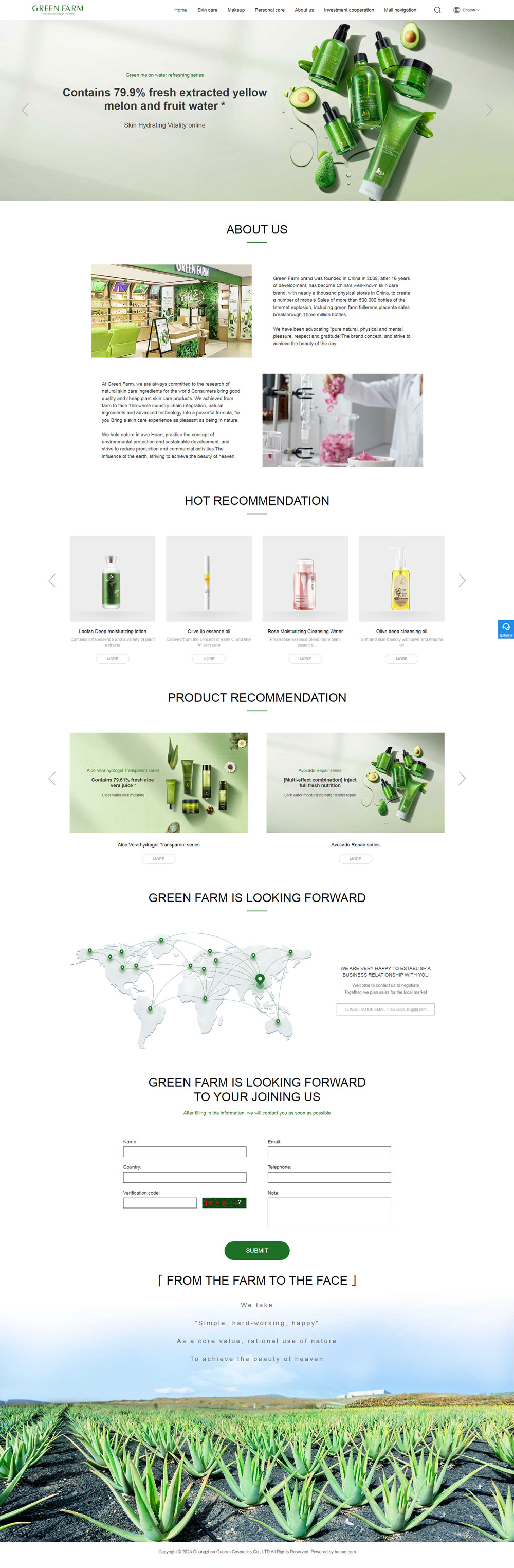 綠色農(nóng)場品牌創(chuàng)立于2008年,產(chǎn)品涵蓋護(hù)膚品、彩妝品、面膜及個人護(hù)理品。自品牌創(chuàng)立伊始,綠色農(nóng)場便一直倡導(dǎo)“純凈天然、身心愉悅、尊重感恩”的品牌理念,研發(fā)了大量廣受消費(fèi)者喜愛的產(chǎn)品。