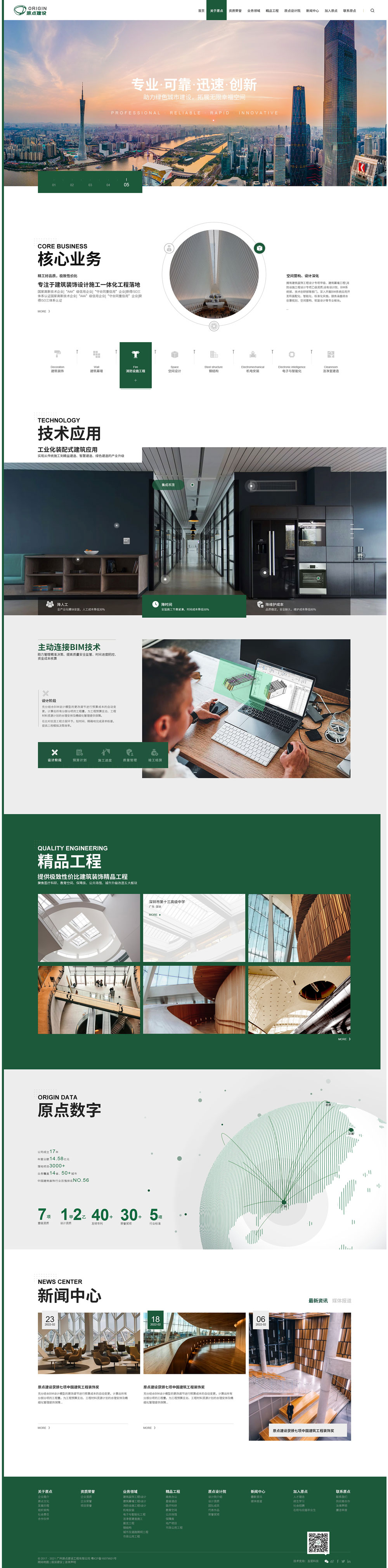 原點建設(企業全稱:廣州原點建設工程有限公司),成立于2005年,注冊資金10038萬元,公司位于廣州市標志性建筑“廣州塔”附近。擁有建筑裝修裝飾工程、建筑幕墻工程、消防設施工程專業承包一級及設計專項等資質,致力于為客戶提供建筑裝飾設計施工一體化精品工程實施及多元化配套服務。