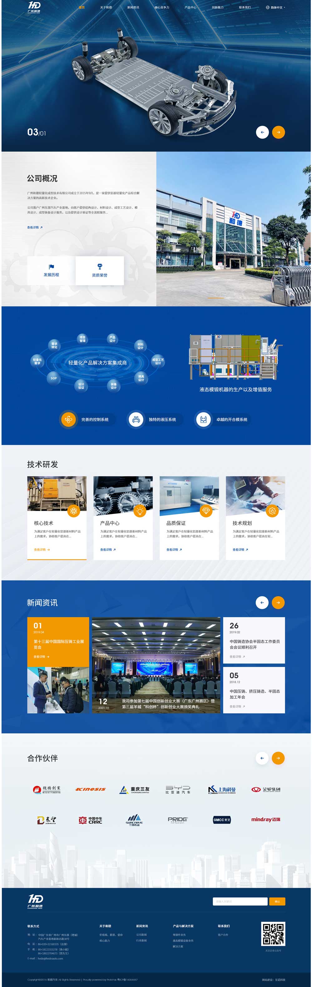 廣州和德輕量化成型技術(shù)有限公司專(zhuān)注于研發(fā)制造鋁基新材料輕量化結(jié)構(gòu)件和相關(guān)裝備,擁有省級(jí)液態(tài)模鍛擠壓鑄造工程技術(shù)研究中心,核心專(zhuān)利20多項(xiàng),已通過(guò)了IATF:16949、ISO:9001、ISO45001、ISO14001等體系認(rèn)證,是國(guó)家認(rèn)定的高新技術(shù)企業(yè),并與國(guó)內(nèi)液態(tài)模鍛產(chǎn)品制造知名企業(yè)、國(guó)際知名模具公司以及與多家知名院校建立科研戰(zhàn)略合作,技術(shù)開(kāi)發(fā)水平居國(guó)內(nèi)前列。