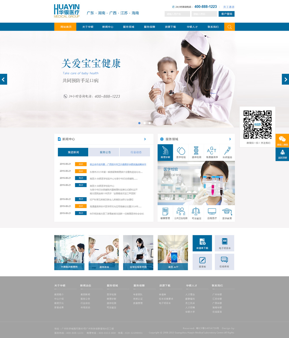 通年近年高速而穩(wěn)健的發(fā)展,公司服務(wù)網(wǎng)絡(luò)目前已覆蓋廣東全省,并立足廣東、面向全國(guó)、拓展國(guó)際,相繼成立南京華東中心、廣西分中心、湖南分中心、四川分中心、重慶分中心,在湖南、海南省、江西省、福建省、河南省、山東省等地建立了檢驗(yàn)服務(wù)網(wǎng)絡(luò),全面擴(kuò)展全國(guó)的醫(yī)療服務(wù)市場(chǎng)。2014年華銀與Labnet公司合作通過(guò)遠(yuǎn)程服務(wù)模式啟動(dòng)與吉爾吉斯斯坦、哈沙克斯坦、越南等國(guó)的合作,進(jìn)一步開(kāi)拓國(guó)際市場(chǎng)。公司未來(lái)的發(fā)展將持續(xù)以醫(yī)學(xué)診斷技術(shù)與服務(wù)為核心,為客戶提供全方位解決方案,成為健康、持續(xù)發(fā)展的世界一流醫(yī)療服務(wù)企業(yè)。