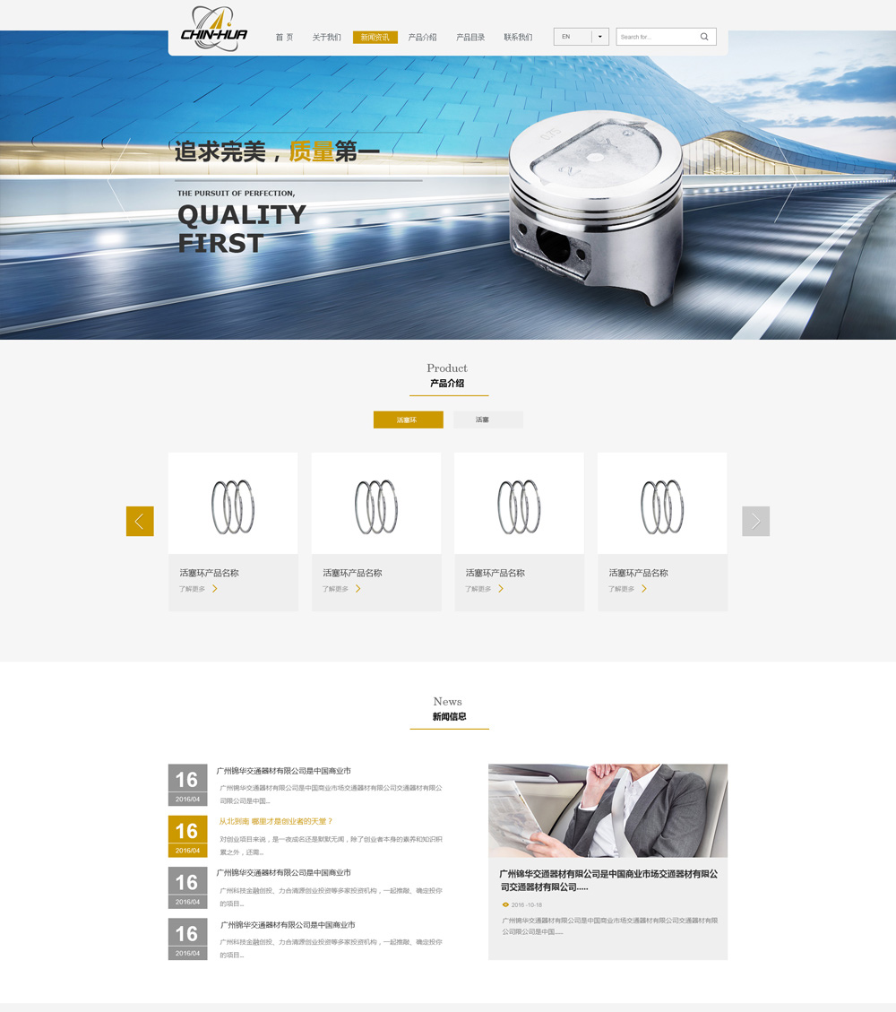 廣州錦華交通器材有限公司為臺資企業,由臺灣萬恒實業股份有限公司于1999年因業務需求于廣州市白云區增設廣州錦華交通器材有限公司,專業生產各類發動機之活塞環,并引進活塞鑄造技術,追求產品質量高端化且多元化的提升。
