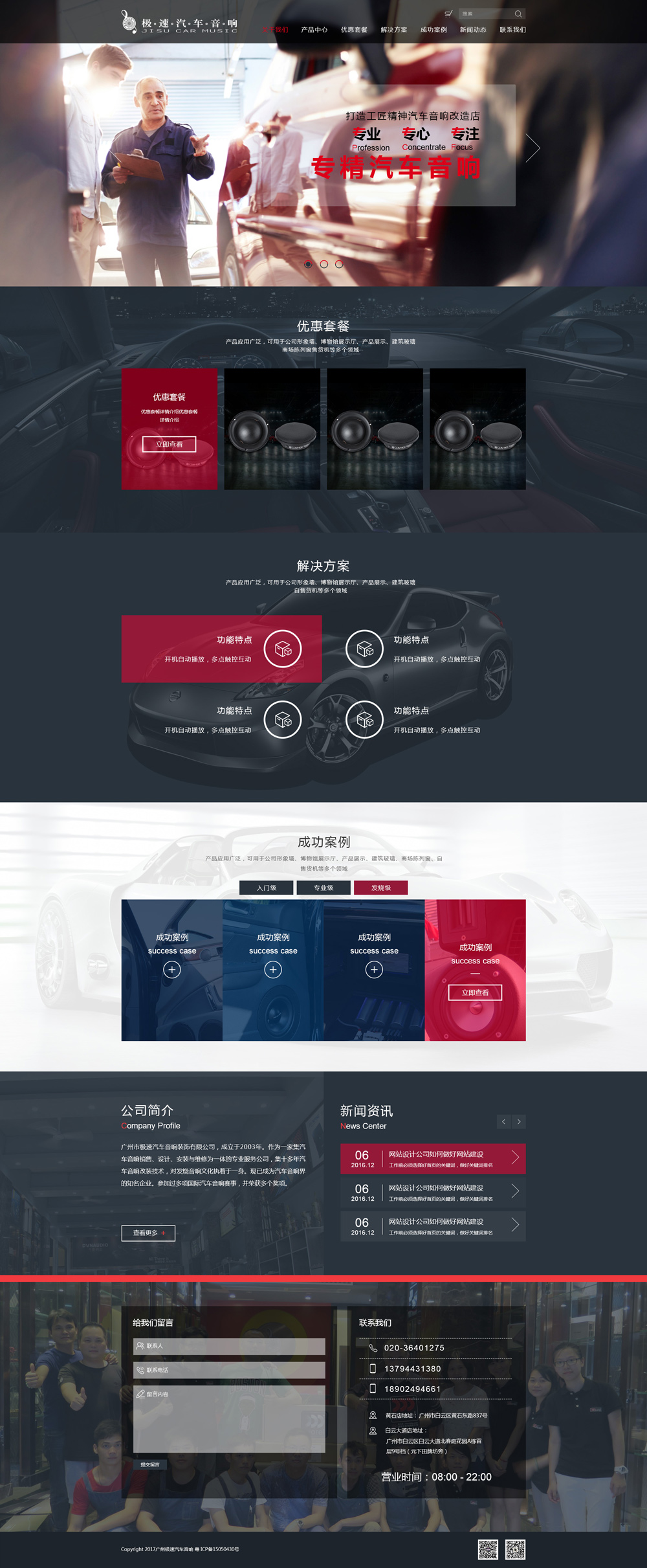 廣州市極速汽車音響裝飾有限公司,成立于2003年。是一家集汽車音響銷售、設(shè)計、安裝與維修于一體的專業(yè)公司,距今有十余年,對汽車音響改裝技術(shù)有豐富的經(jīng)驗和強大的技術(shù)支持、并對音響發(fā)燒文化有獨特的見解,并致力于該文化中不斷深入研究,現(xiàn)今極速已成為汽車音響界的知名企業(yè)。極速在相關(guān)領(lǐng)域中緊跟國際步伐,并與之加強交流,不固步自封,在這過程中,極速自身不斷吸取其中的優(yōu)劣完善自身,并在多項國際汽車音響大賽中榮獲多項殊榮。十余年的沉淀與執(zhí)著,貫徹于極速上下的員工不斷的進取、拓展業(yè)務發(fā)展方向,將極速的形象更加立體,致力于為“三品”、“三專”為經(jīng)營理念和服務宗旨并貫徹于各項業(yè)務服務當中。