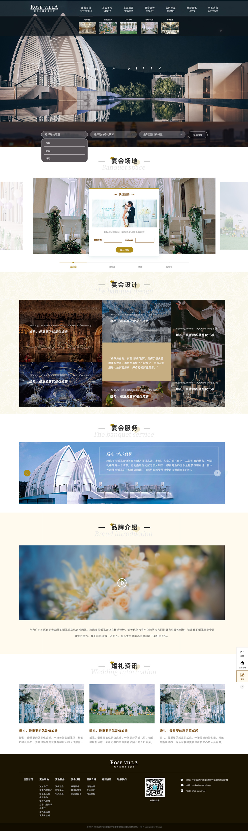 玫瑰莊園婚禮會館是華南地區首家一站式的國際化婚禮會館,以結婚市場需求為導向,定制了“婚紗攝影、婚嫁宴席和婚禮儀式”等婚慶產業鏈的一站式創新解決方案;是深圳幸福天下投資有限公司攜十年婚紗攝影基地運營之大成,立足打造婚慶文旅全產業鏈的扛鼎之作;它蘊含幸福天下全體股東以及大鵬地區4800余位股民的智慧結晶。作為廣東地區首家全功能的婚禮婚慶綜合性場館,玫瑰莊園婚禮會館在場地設計、細節優化與客戶體驗等多方面均具有突破性創新,這是我們婚禮事業中最真誠的巨作。我們將陪伴每一對新人,在人生中最幸福的時刻留下美好的回憶。玫瑰莊園婚禮會館總占地8500平方米,投資過億元。自2016年10月項目立項到建設整整經歷了十三個月的時間,我們為荒廢注入新生,為夢想構筑舞臺,經歷無數個不眠之夜終于建成了深圳第一家婚禮會館。玫瑰莊園婚禮會館是大鵬第六工業區第一個啟動三舊物業改造、園區綜合整治、城市更新的項目。項目的啟動,標志著深圳國際婚博園的整體發展揭開嶄新篇章