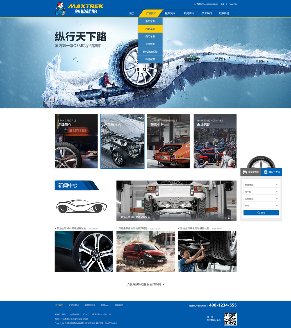 肇慶駿鴻實業有限公司滿足全系列乘用車子午線輪胎的產品需求。公司成立以來,不斷挖掘市場潛在需求,一直以滿足輪胎市場多樣化的需求為產品開發方向,不僅有傳統的轎車子午線輪胎、輕卡輪胎,還有針對不同市場需求的冬季輪胎、城市SUV輪胎和山地專用越野輪胎、缺氣保用輪胎以及四季胎等不同類別的產品,覆蓋了18個花紋系列、600多個輪胎規格,輪胎尺寸從12寸到24寸,輪胎高寬比從95系列到30系列,速度級別從R級到Y級,產品系列非常齊全。