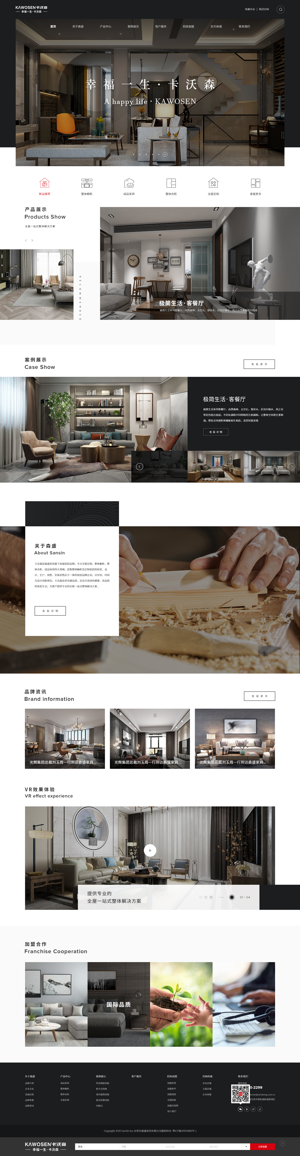 卡沃森總部森盛集團探索大家居行業之路30年,從未止步。以推動成品家具、定制家居變革為己任,以打造幸福家居生活為使命,將藝術、科技、智能、實用完美融于家居生活。卡沃森強大的國際、國內研發設計團隊不斷突破創新,以原創、時尚、前衛、國際化為立足之本,引領行業發展趨勢和潮流??ㄎ稚钚庐a品意式輕奢、現代極簡、時尚簡歐、新中式四大風格八大系列隆重上市,為客戶打造幸福家居生活全方位保駕護航。
