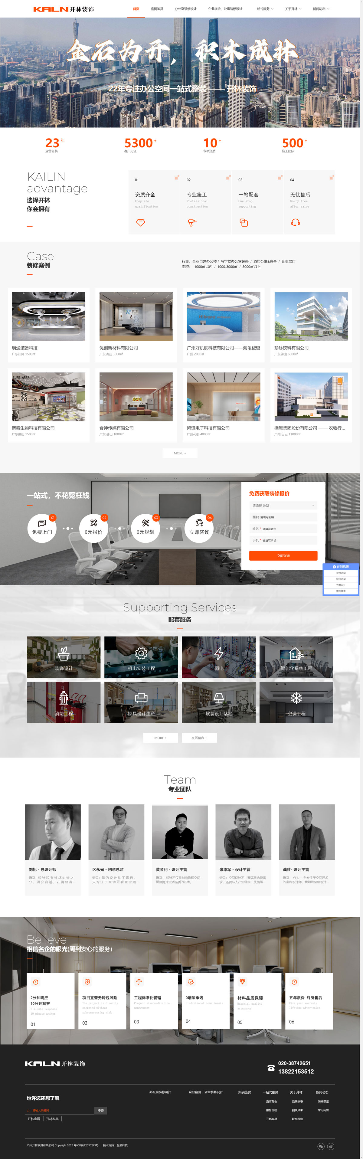廣州開林裝飾有限公司自 2002 年成立以來,已專注于辦公室室內工程領域運營 23 年。作為一家具備設計與施工二級資質的企業,開林裝飾不僅提供設計、施工服務,還涵蓋強弱電工程、機電工程、家具生產銷售及軟裝設計落地等一體化配套服務。多年來,其憑借出色的服務,累計服務客戶超過 5300+,客戶回頭率高達 98%,已然成為廣東省極具實操執行力的室內總承包公司。然而,隨著市場競爭的日益激烈,開林裝飾意識到,要進一步拓展業務、提升品牌影響力,一個能夠全方位展示企業實力與服務的專業網站必不可少。