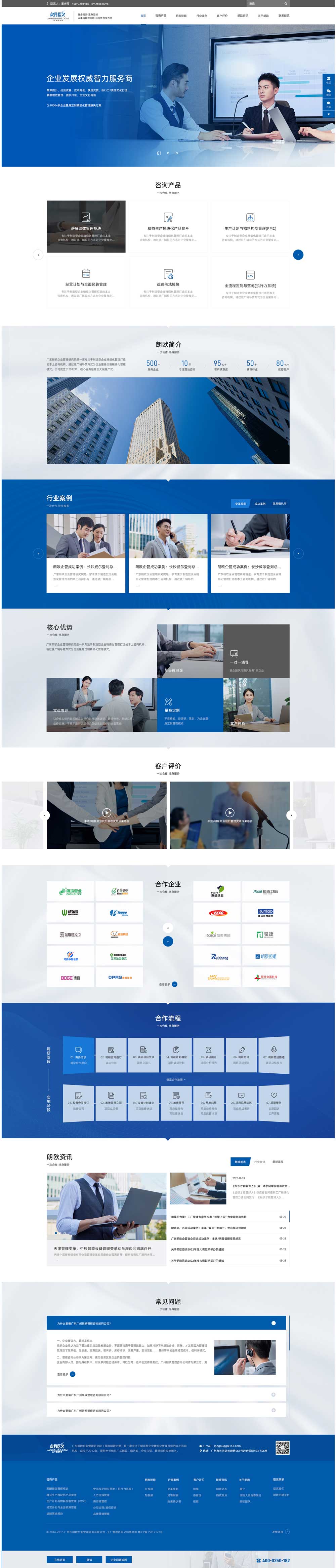 朗歐咨詢(xún)有專(zhuān)職顧問(wèn)團(tuán)隊(duì)60余名,咨詢(xún)項(xiàng)目遍布全國(guó),為確保項(xiàng)目質(zhì)量,朗歐同期進(jìn)行輔導(dǎo)的項(xiàng)目企業(yè)常年控制在20家以?xún)?nèi),覆蓋了包裝、化工、造紙、五金、機(jī)械設(shè)備、電子、防盜門(mén)/木門(mén)、食品等行業(yè)。