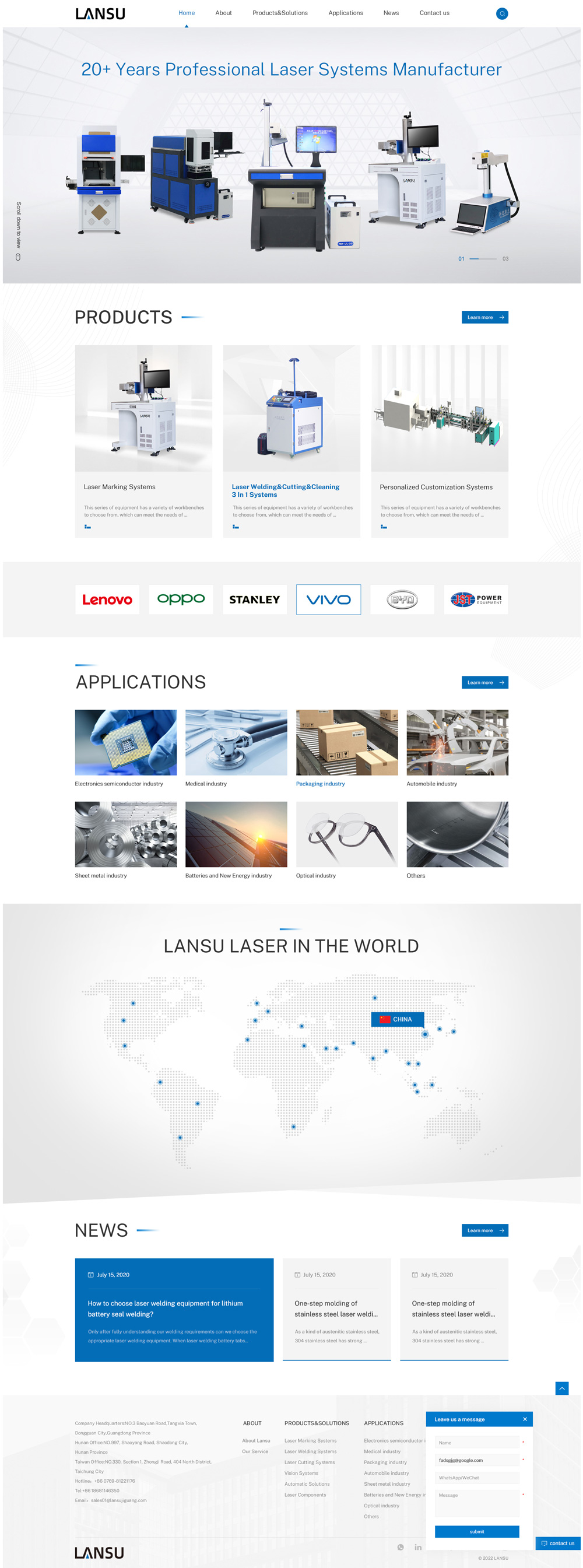 LANSU LASER is a enterprise that develops laser marking and engraving technologies and does so with passion and dedication.We are big enough to make a difference, but small enough to take care of every single customer. Our Study and Design team ensures traceability, production chain control, brand visibility and industrial process automation.Our qualified salesmen and technicians are always available to respond to the needs of our customers in order to guarantee the very best service.LANSU LASER welcome all of our customers to become our partner and distributor!