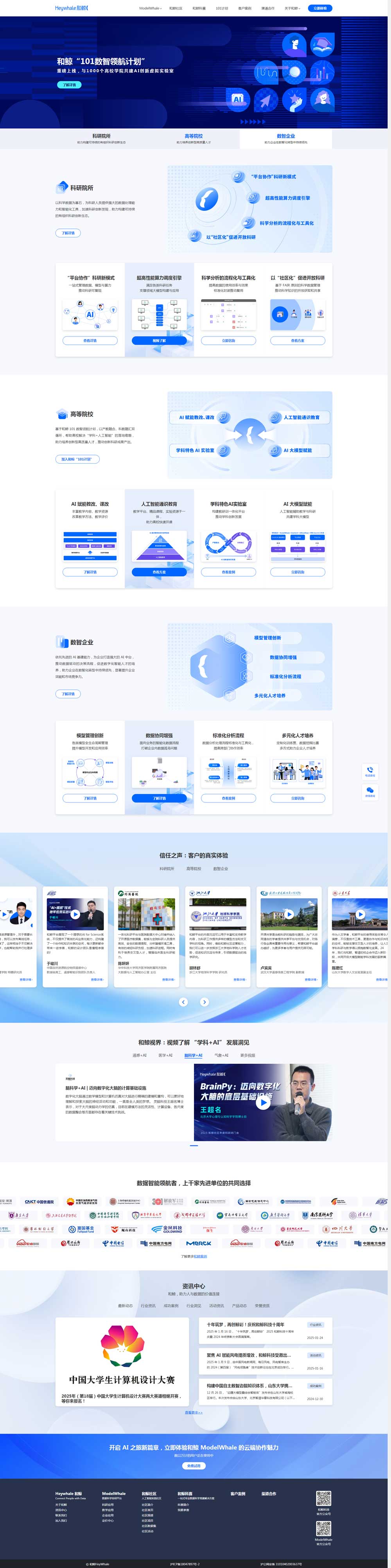 上海和今信息科技有限公司(簡稱:和鯨科技)成立于 2015 年,以“Connect People with Data,人與數據的價值連接”為使命,志在與開拓者同行,以“協同平臺 + 實踐社區 + 競賽服務”三位一體的數據科學與人工智能基礎設施建設體系,助力各行各業打通數據的價值閉環,實現 AI 賦能應用落地。客戶覆蓋氣象、教育、醫療、航空航天、金融、通信、能源、零售等眾多領域,與眾多高校、科研機構、企業等單位展開了深度合作。
