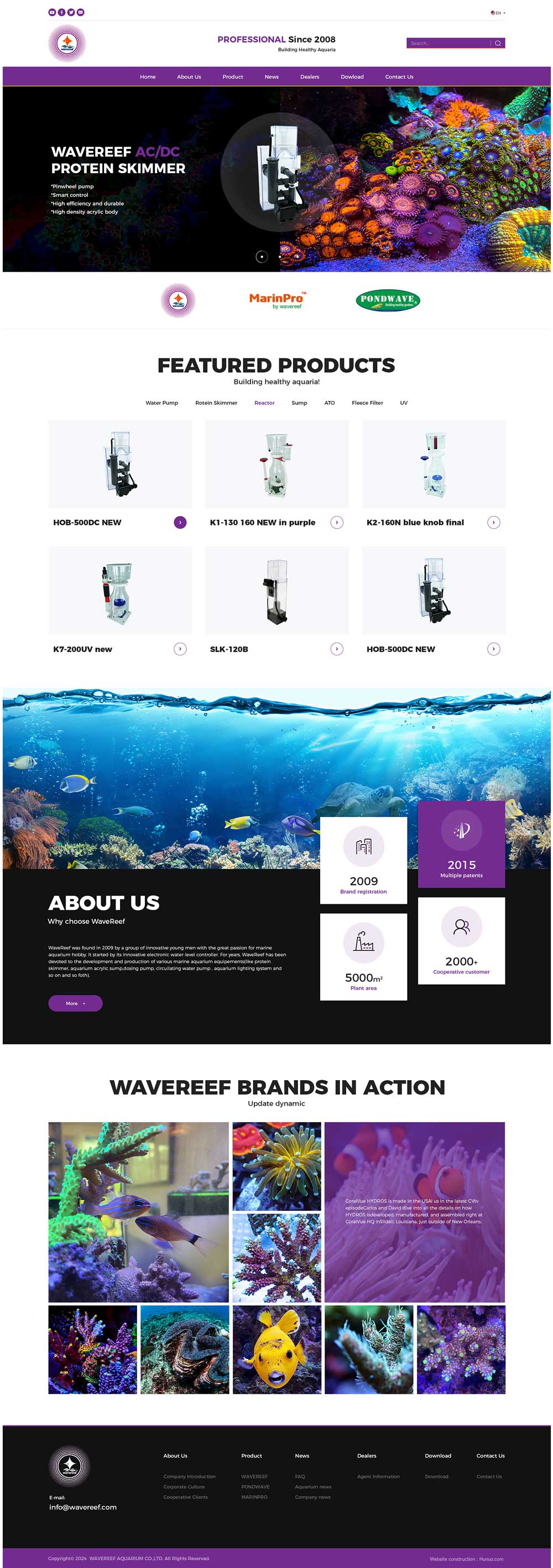 WaveReef成立于2009年,由一群對水族館充滿熱情的年輕創新者創立。WaveReef以創新的電子水位控制器起家。多年來,WaveReef一直致力于開發和生產各種海洋水族館設備(如蛋白分離器、水族館亞克力沉降槽、投藥泵、循環水泵、水族館照明系統等)。