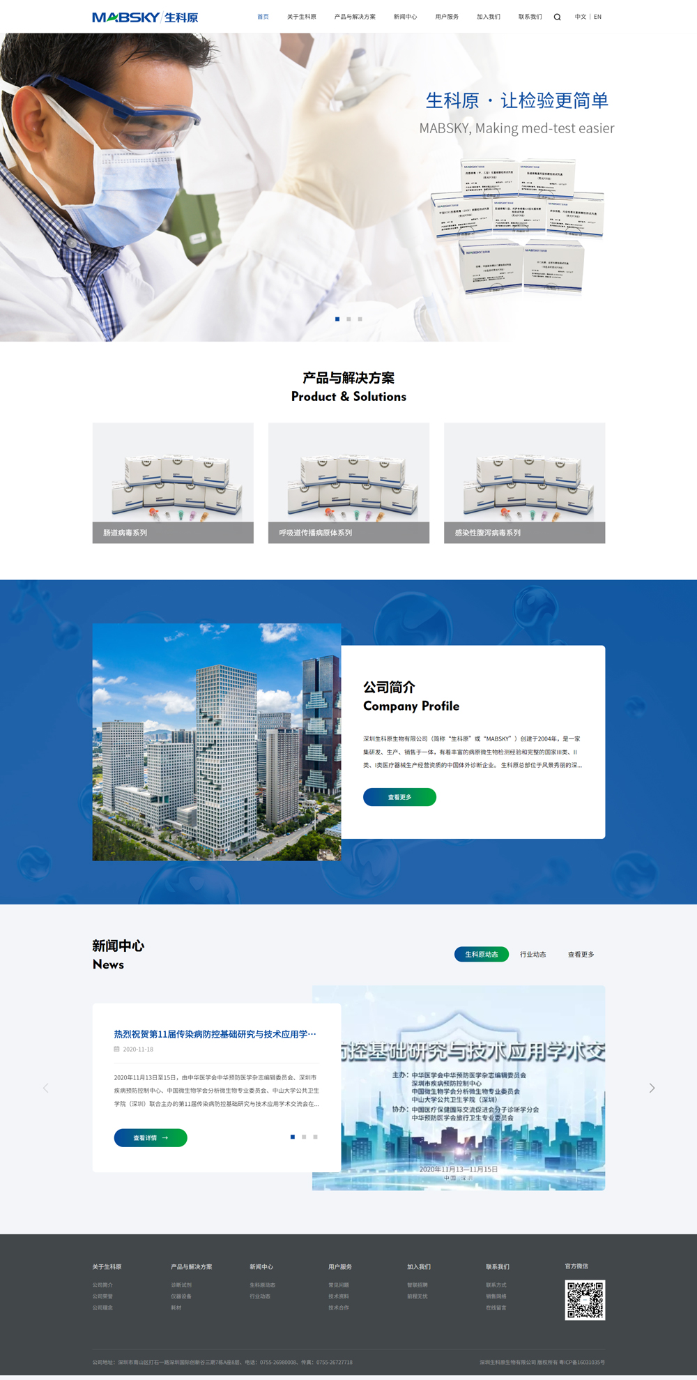 Mabsky (Shenzhen) is a high-tech company specialized in the R&D, production and marketing of molecular biological and immunological diagnostic products. The company is launched by returned Chinese scholars who have sought further education in U.S. and Europe.