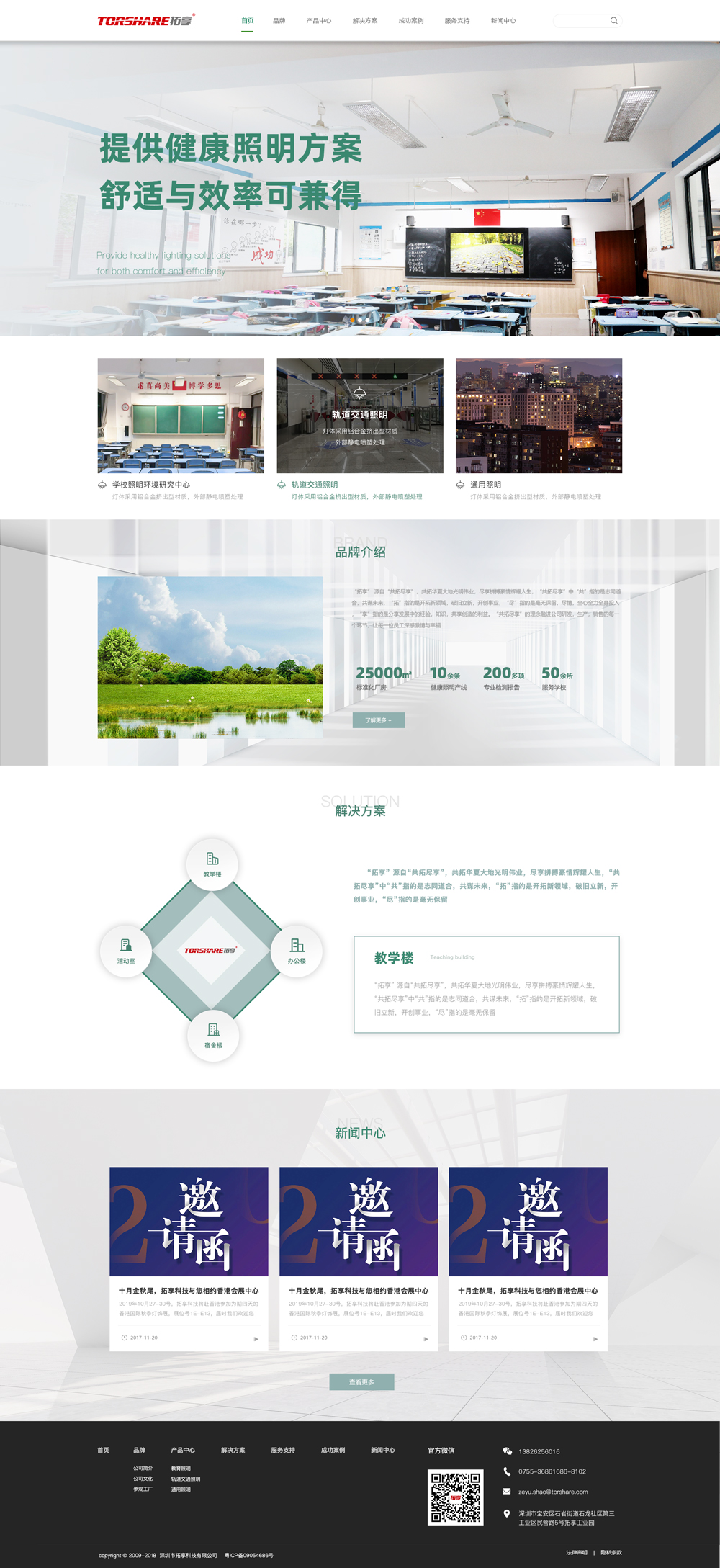 2018年,拓享科技開始全力進軍教育照明市場,創設“睿視明”健康照明品牌,年研發投入超過1500萬元。截止目前,拓享科技已獨立研創出一批品質過硬的教育照明產品,包含LED健康黑板燈、LED健康教室燈、護目LED面板燈三大系列,可根據需求提供不同解決方案。2019年,拓享健康照明項目推出一系列“全光譜”產品,其發出的光譜更接近太陽光,在提供優質光環境的基礎上,提高學習效率。其中650nm的光,可有效治療近視。