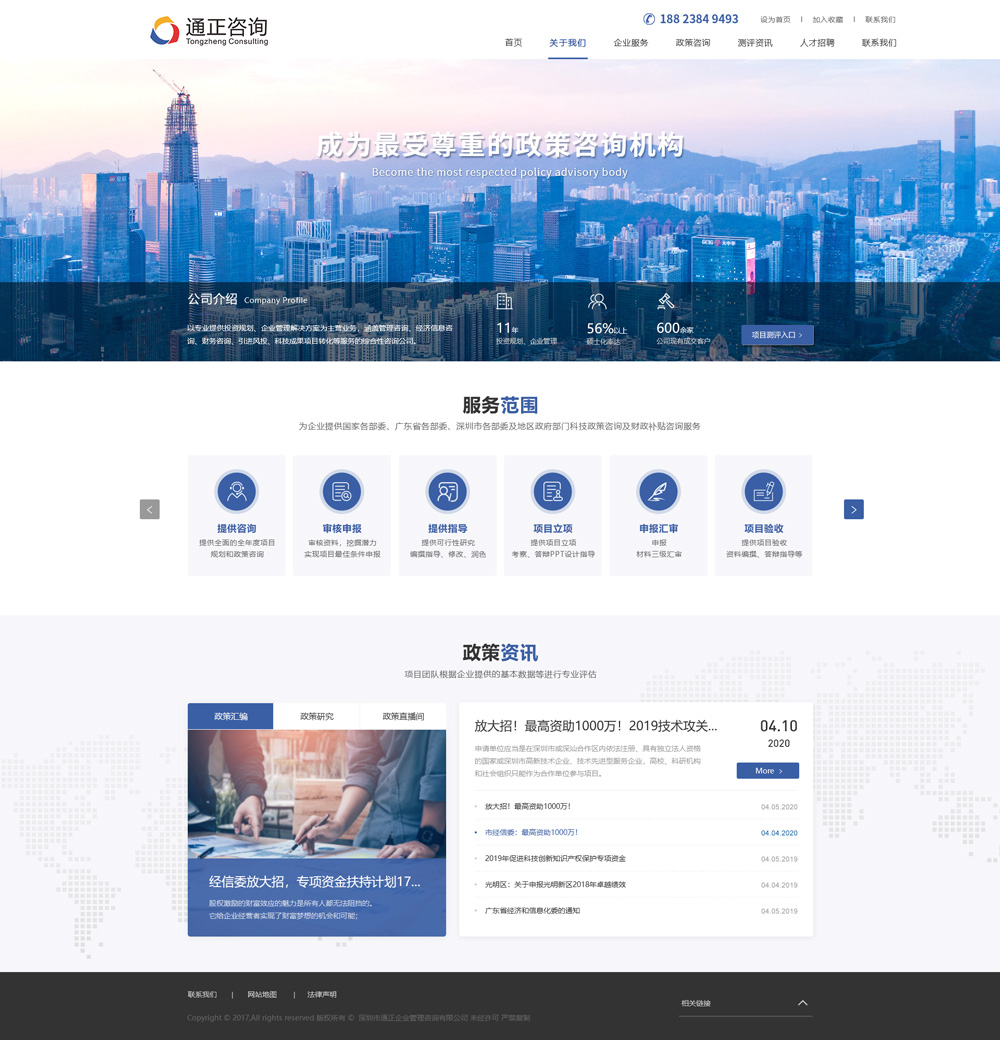 深圳市通正企業(yè)管理咨詢有限公司成立于2009年,是一家專業(yè)的商業(yè)咨詢公司,為企業(yè)提供專業(yè)的管理、政策咨詢服務(wù)。經(jīng)過(guò)多年的發(fā)展,公司建立了一支高素質(zhì)專業(yè)化隊(duì)伍,現(xiàn)有員工100余人,部分來(lái)自英國(guó)南安普敦大學(xué)、湖南大學(xué)、廈門大學(xué)、首都師范大學(xué)、深圳大學(xué)等海內(nèi)外知名院校,橫跨文、理、工、法等學(xué)科,其中碩士占有率約56%。當(dāng)前,合作客戶1000余家,其中主板上市企業(yè)60余家,涉及電子信息、互聯(lián)網(wǎng)、生物、材料、機(jī)械、化工、醫(yī)藥、能源、環(huán)保等行業(yè)。