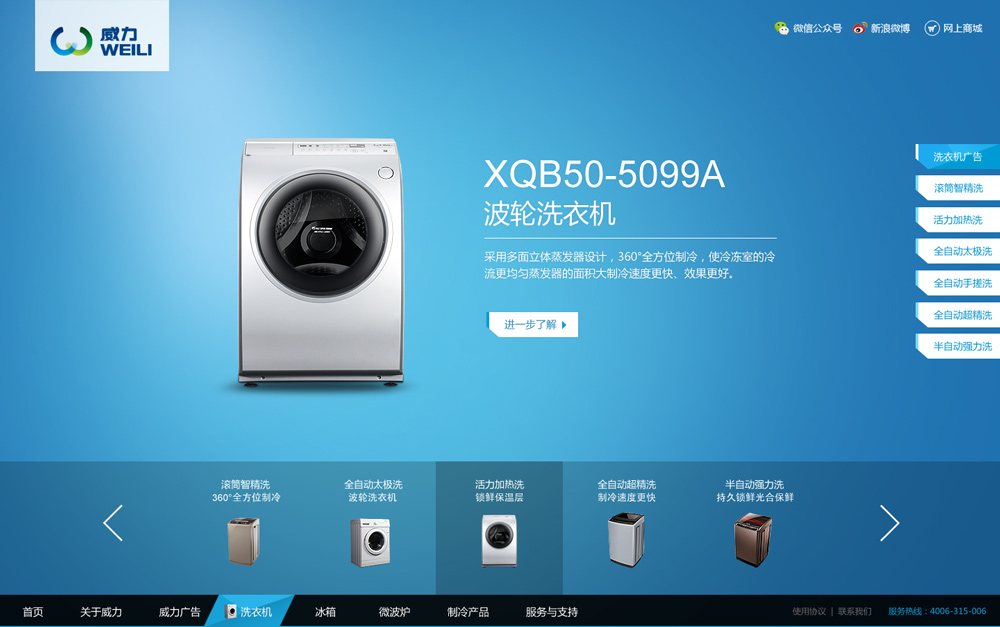 品牌的成長,不僅來源于廣大消費者的支持與喜愛,也來源于威力切實為消費者提供品質卓越的產品及服務的理念。基于這一理念,威力在產品外觀、性能、品牌風格等方面注入“科技、時尚、環保、創新、合作、共贏”的全新內涵,以“團結、拼搏、開拓、創新”的威力精神,實現威力“國內領先、全球知名”的愿景。