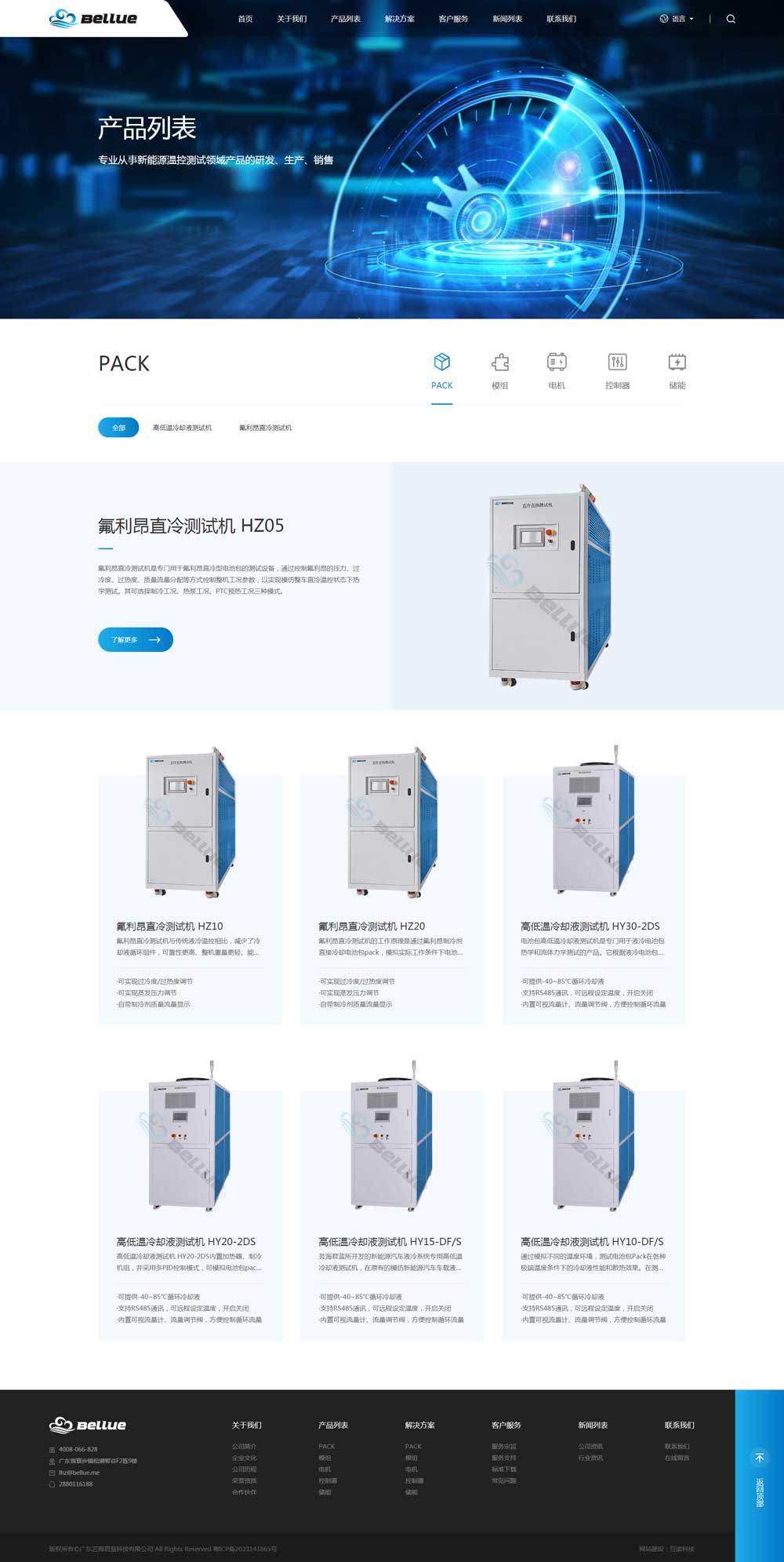 蕓海君藍(lán)專業(yè)從事新能源溫控測試領(lǐng)域產(chǎn)品的研發(fā)、生產(chǎn)、銷售。主要產(chǎn)品有新能源汽車高低溫冷卻液測試機(jī)、電池包液冷測試機(jī)、新能源汽車氟利昂直冷測試機(jī)等產(chǎn)品。