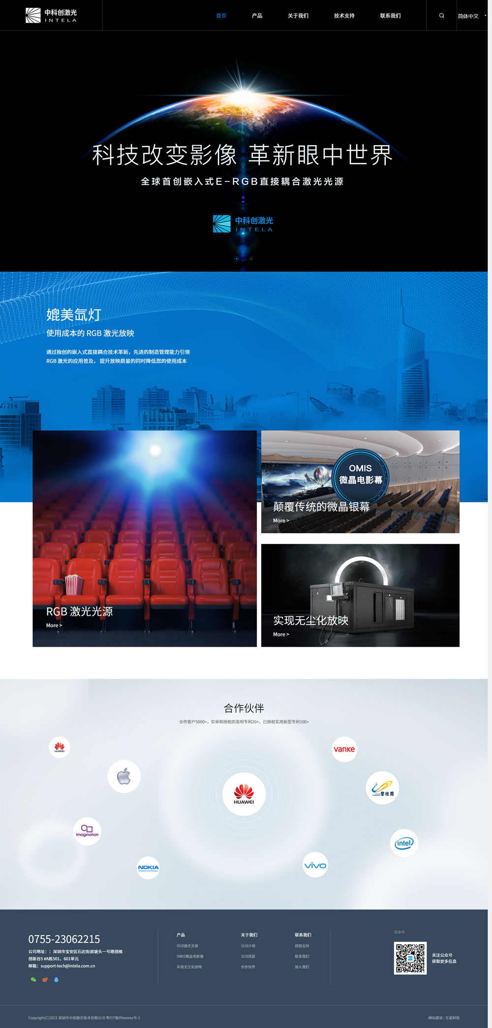 深圳市中科創(chuàng)激光技術(shù)有限公司是深圳市瑞豐光電子股份有限公司(股票代碼300241)的控股子公司,公司從事激光顯示技術(shù)的研發(fā)應(yīng)用,目前主要市場在專業(yè)數(shù)字電影放映設(shè)備領(lǐng)域,是一家集產(chǎn)品研發(fā)、生產(chǎn)、銷售、服務(wù)于一體的綜合性高新技術(shù)企業(yè)。依托本公司獨(dú)創(chuàng)的嵌入式RGB直接耦合專利技術(shù),公司于2016年向市場推出全球首款電影放映機(jī)激光光源,成功切入高端激光放映設(shè)備行業(yè)。目前公司產(chǎn)品覆蓋市面上全系列電影放映機(jī),為客戶提供最卓越的光源產(chǎn)品和綜合解決方案。