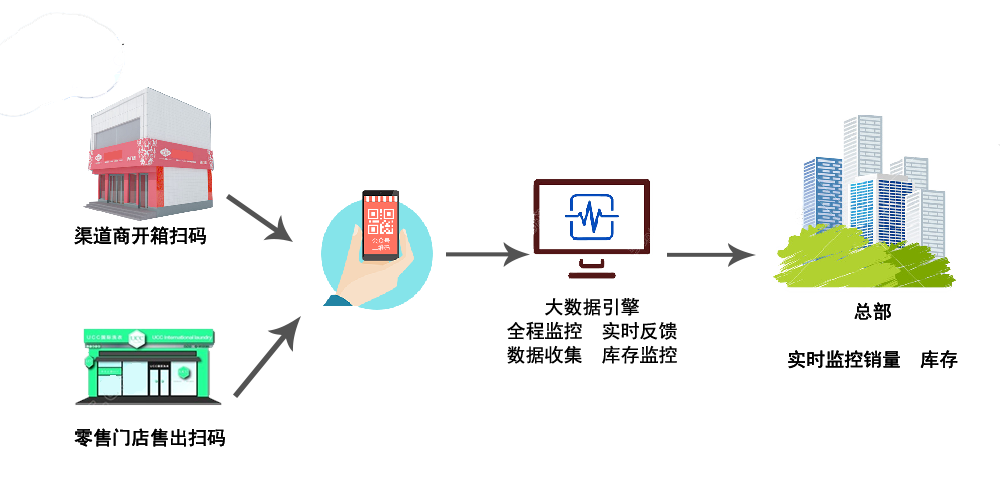 無論是渠道商還是零售網點每次開箱掃碼,數據都會實時數據反饋到企業系統后臺;