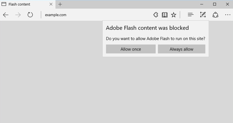官方宣布,將在明年的“創作者更新Creators Update”中采取措施,即Edge瀏覽器默認屏蔽,用戶需要手動點擊運行提醒彈窗來加載。