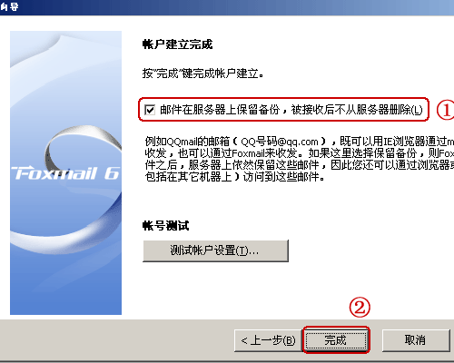 ·選擇 “郵件在服務(wù)器上保留備份” ,然后點(diǎn)擊“完成”;